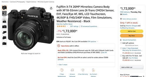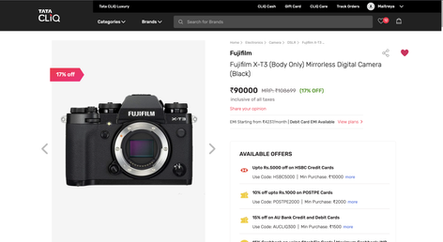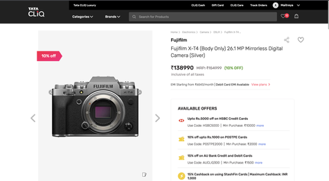 FUJIFILM XT-3 ON TATA CLIQ & FUJIFILM XT-3 AT AMAZON.IN
